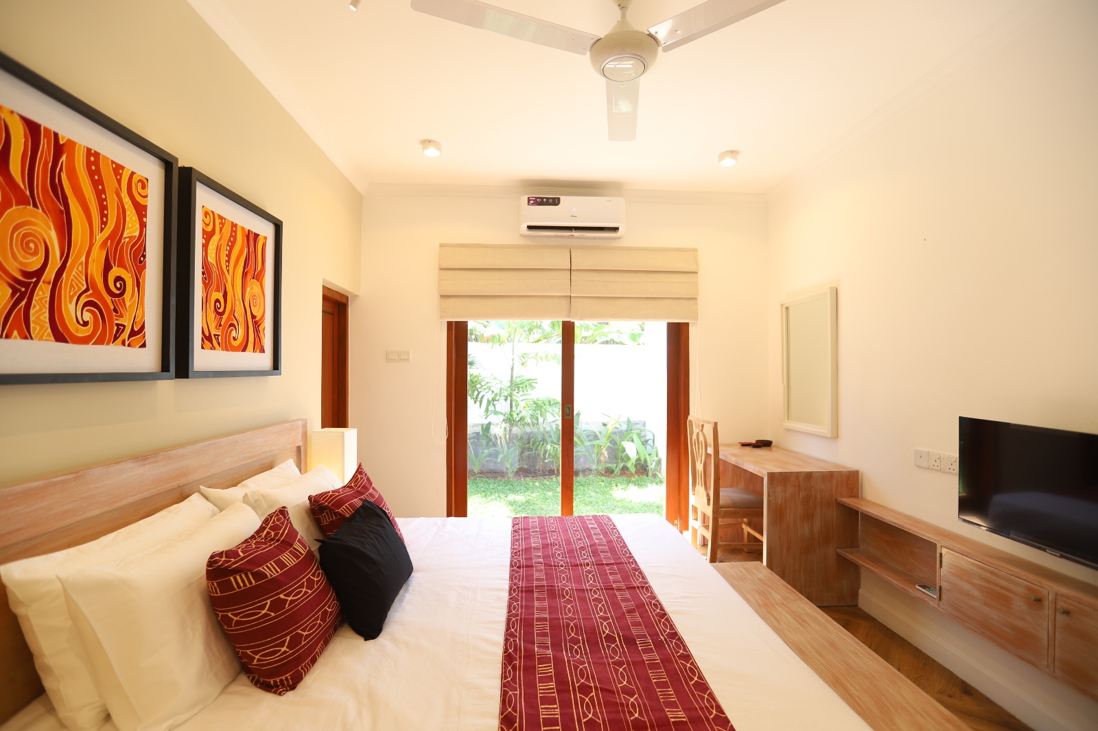 Inspired by the dynamic Fire element, the Saffron Room radiates warmth through rich golden-yellow and orange tones. Designed for guests who enjoy a lively yet elegant atmosphere, the room features a spacious king-size bed, a private courtyard, and a stylish en-suite bathroom with hot water. With full air-conditioning and refined interiors, Saffron offers a memorable stay filled with comfort, character, and charm.